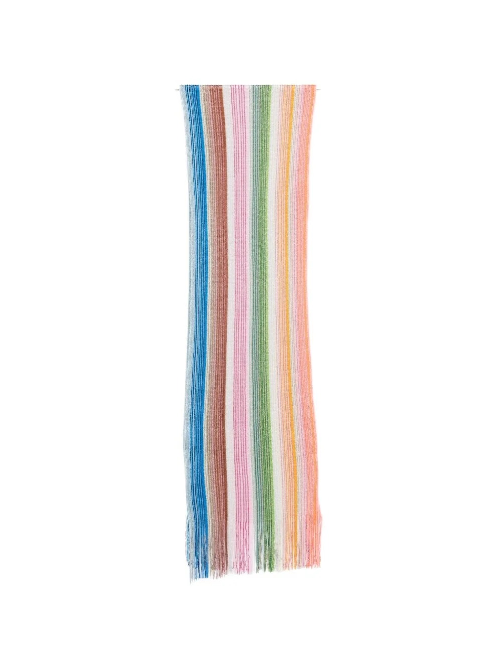 Striped scarf [ SKU: 10194094218 ] Elevate your accessory collection with the Striped scarf by Missoni. This exquisite scarf showcases a vibrant pattern that embodies the brand's iconic style. Perfect for adding a touch of sophistication to both casual and formal outfits, it can be elegantly draped around the neck or worn as a stylish head wrap. Ideal for those who appreciate unique design and high-quality craftsmanship, this scarf effortlessly enhances your wardrobe, making it a versatile piece for any occasion. Reference SC35VMDA5020001