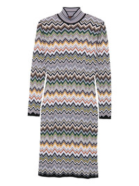 Wool blend midi dress [ SKU: 10191350500 ] brown/multicolor zigzag pattern high neck long sleeves Reference DS25WG2ABK01CQSM9TA