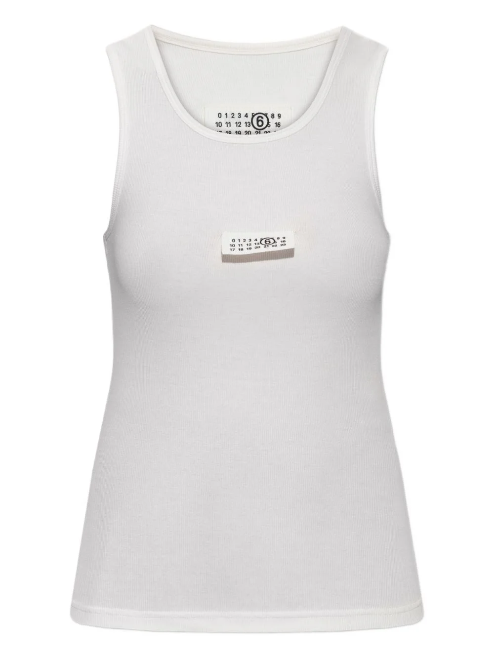 Logo cotton tank top [ SKU: 10191930193 ] The Logo cotton tank top by MM6 Maison Margiela is a striking addition to any fashion-forward wardrobe. This top is designed for effortless layering and can be styled for both casual outings and sophisticated gatherings. Pair it with tailored trousers for a chic look or with denim for a more relaxed vibe. The minimalist design is accentuated by the iconic logo, making it a versatile piece that speaks to contemporary elegance. Ideal for warm days and stylish nights, this tank top embodies the essence of modern luxury, elevating your everyday ensemble with ease. Reference S52NL0075M20054101