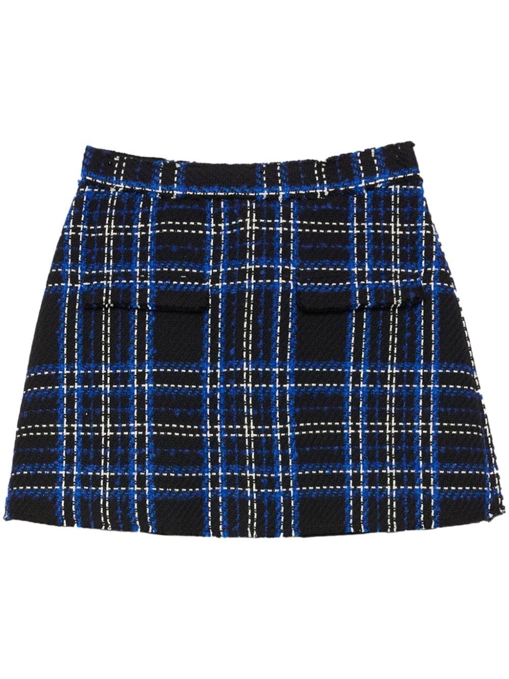 Skirt with tartan pattern [ SKU: 11301772226 ] black/blue check pattern fringed edge rear zip fastening two front flap pockets Composition 47% WO / 28% PL / 14% PC / 6% PA / 5% AF Reference 3741MDB1124762899 Made in Italy
