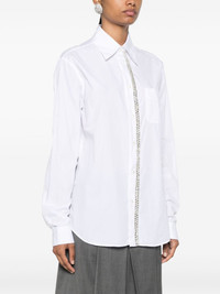 Fabric shirt [ SKU: 11303572793 ] white cotton poplin texture classic collar long sleeves with buttoned cuffs chest patch pocket with embroidered logo rhinestone embellishment curved hem front button fastening Composition 100%CO Reference G02100741101 Made in Tunisia