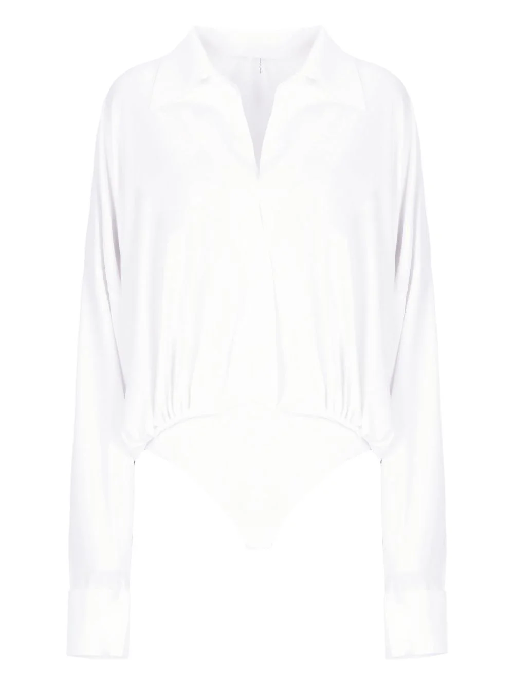 Oversized shirt bodysuit [ SKU: 10190853711 ] The Oversized shirt bodysuit by Norma Kamali represents a perfect fusion of contemporary style and timeless elegance. This shirt is ideal for creating effortlessly chic looks, whether paired with tailored trousers for a sophisticated office outfit or styled with denim shorts for a casual day out. Its unique design features an innovative bodysuit construction that ensures a sleek silhouette and comfort throughout the day. Perfect for both brunches and evening gatherings, this piece is versatile and suitable for various occasions. Embrace the luxury of a thoughtful and stylish wardrobe choice with this exquisite bodysuit. Composition 95%Polyester 5%Elastane Reference KK322BPL183944 Made in China