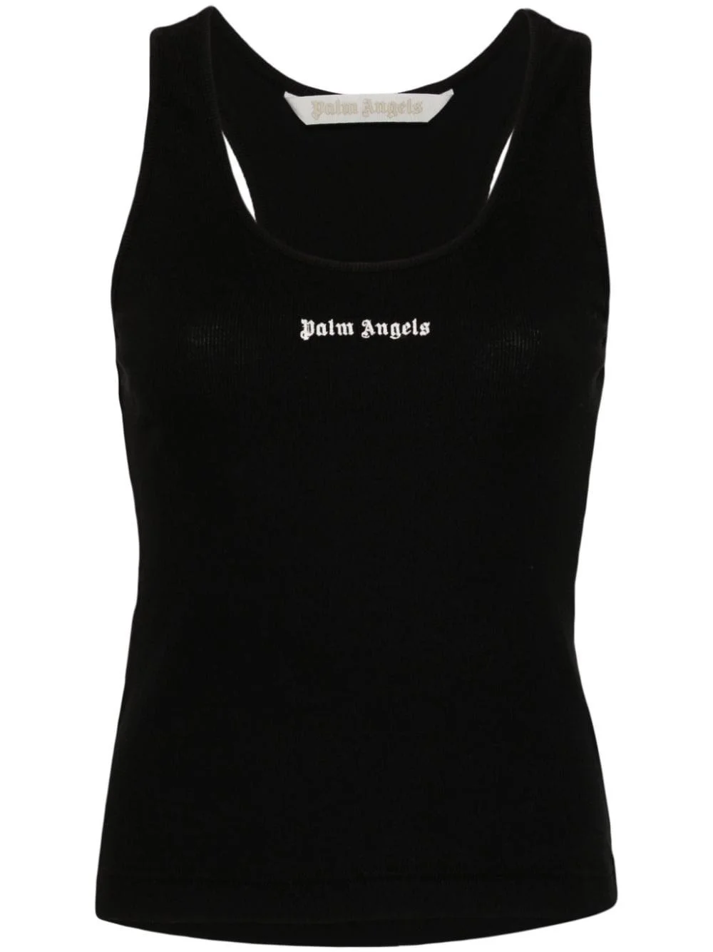 Logo ribbed tank top [ SKU: 10112210759 ] black cotton blend ribbed knit embroidered logo at the chest scoop neck sleeveless racerback straight hem Composition Cotton 100% Reference PWAC020C99FAB0011003 Made in Italy Size and Fit This piece fits true to size. We recommend you get your regular size Model is 1,75m / 5ft 8in wearing size S