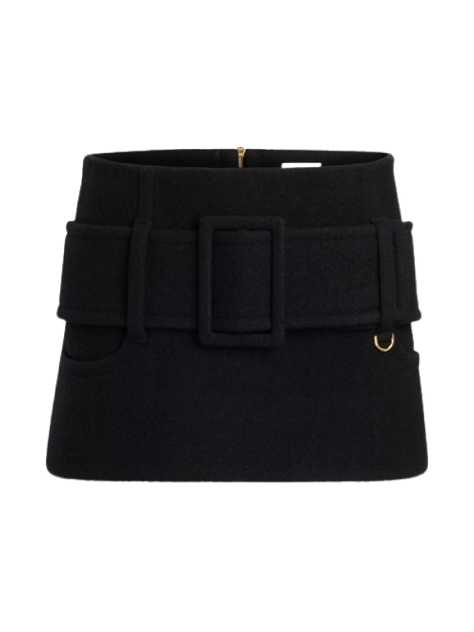 Belted mini skirt [ SKU: 11300430355 ] black boiled wool buckle belt mini length concealed zip fastening metal ring detail Reference SK0990232999B