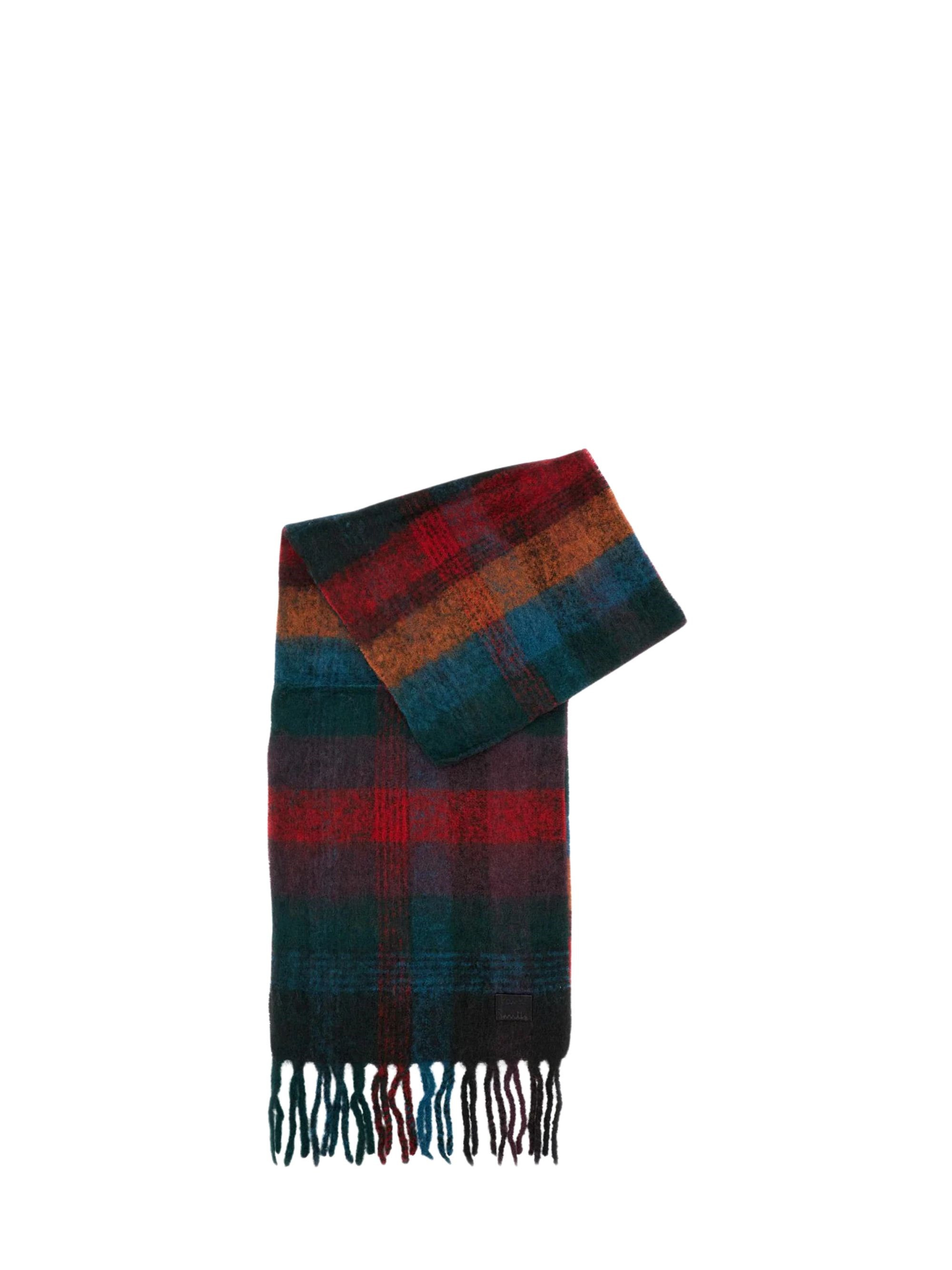 Chunky Scarf [ SKU: 11303998694 ] red check pattern fringed trim Composition 100% MERINO WOOL Reference M1A150KT80825 Made in China