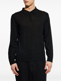 Wool polo shirt [ SKU: 10198579782 ] black short front button fastening long sleeves ribbed cuffs and hem Reference M1R241ZP0209379