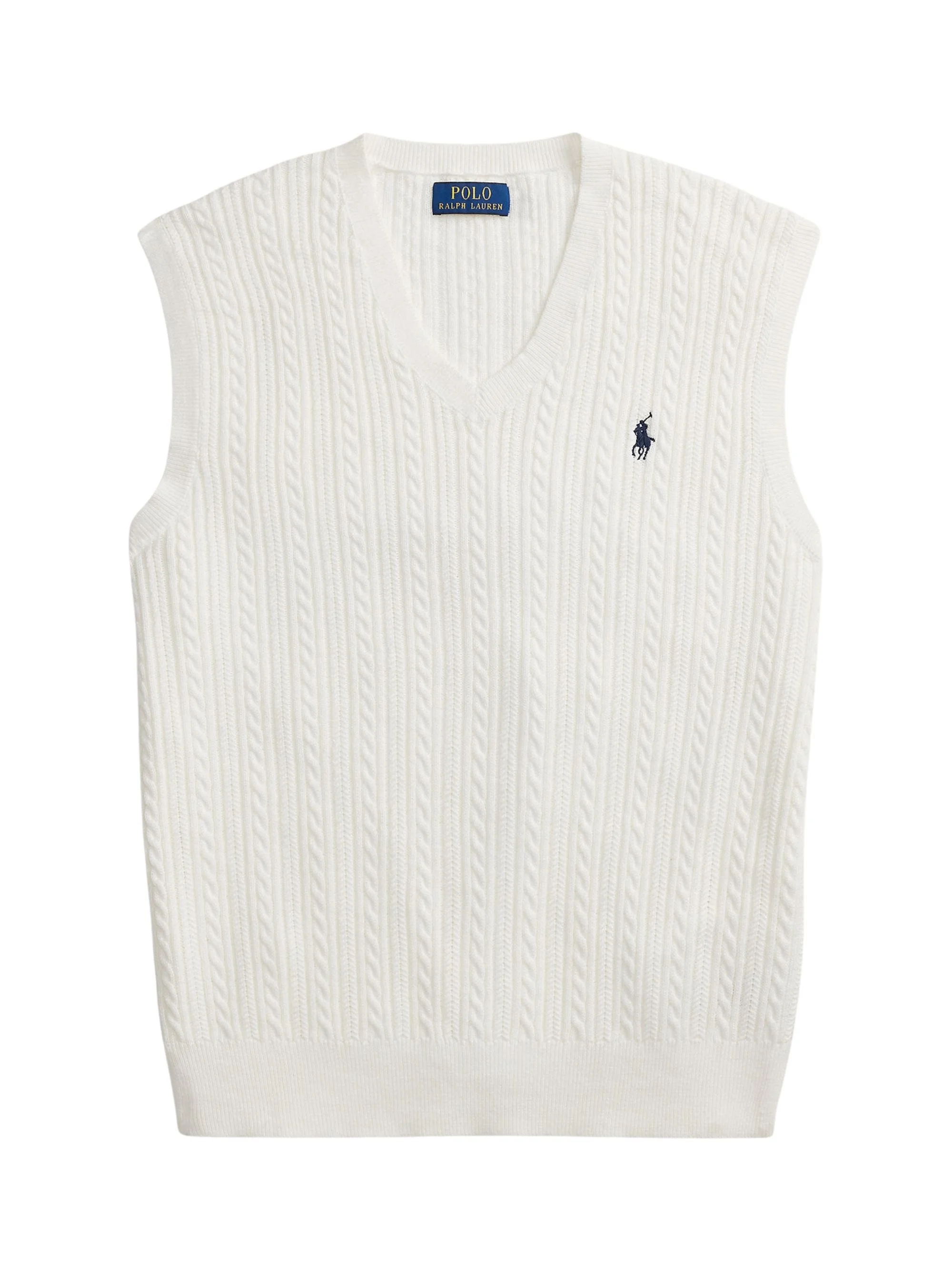 Cable-knit vest with logo [ SKU: 11451024911 ] The Cable-knit vest with logo by POLO RALPH LAUREN embodies sophistication and style as a luxurious addition to your wardrobe. This gilet features a classic cable-knit design, complemented by the iconic logo, making it perfect for both casual outings and refined gatherings. Pair it with tailored trousers or layered over a crisp shirt for an effortlessly chic look. Ideal for the modern gentleman, this piece enhances any ensemble with its timeless appeal and distinct character. Composition 100% COTTON Reference 710B13895001 Made in Cambodia