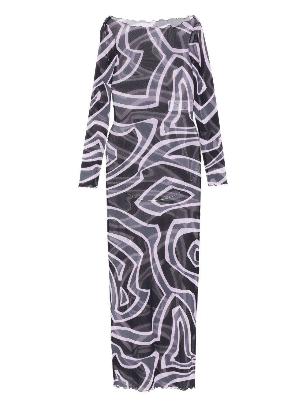 Printed maxi dress [ SKU: 10197869011 ] black and pink abstract print long sleeves boat neck scalloped hem Reference 5UJI355U749047 Made in Italy