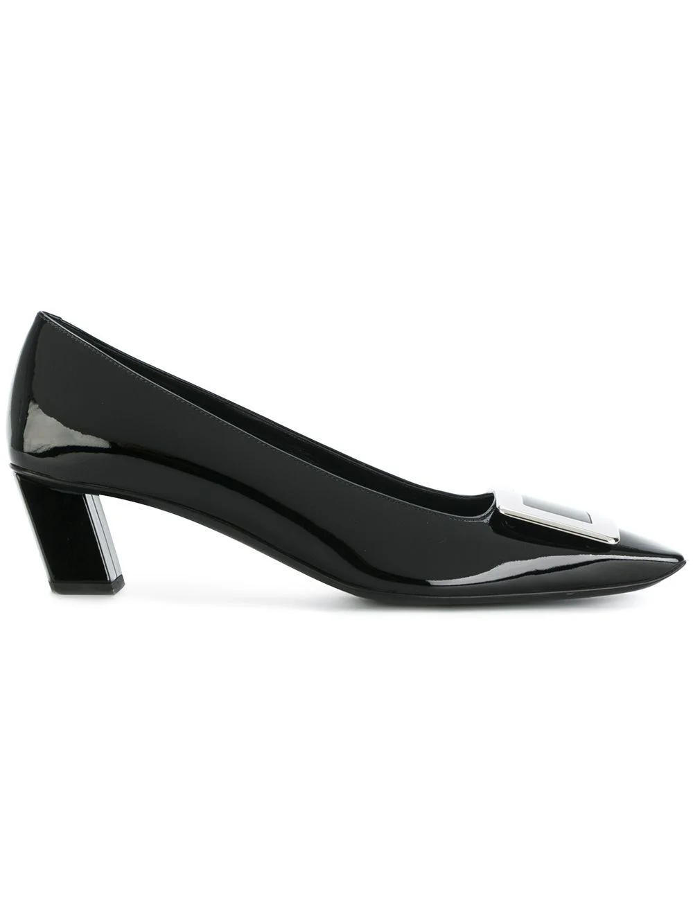 Belle Vivier patent leather pumps [ SKU: 10191243378 ] The Belle Vivier patent leather pumps by Roger Vivier embody a timeless elegance that seamlessly blends sophistication and style. Ideal for formal events or a chic day at the office, these pumps can be paired with tailored trousers or a classic little black dress for a polished look. The distinctive slanted heel adds a unique touch, while the sleek design ensures comfort without compromising on flair. Perfect for evening soirees or upscale gatherings, these pumps elevate any outfit, making them a versatile addition to your luxury footwear collection. Composition Calf Leather 100% Reference RVW00600920D1PB999 Made in ITALY Size and Fit HEEL: 4.5 Centimetres