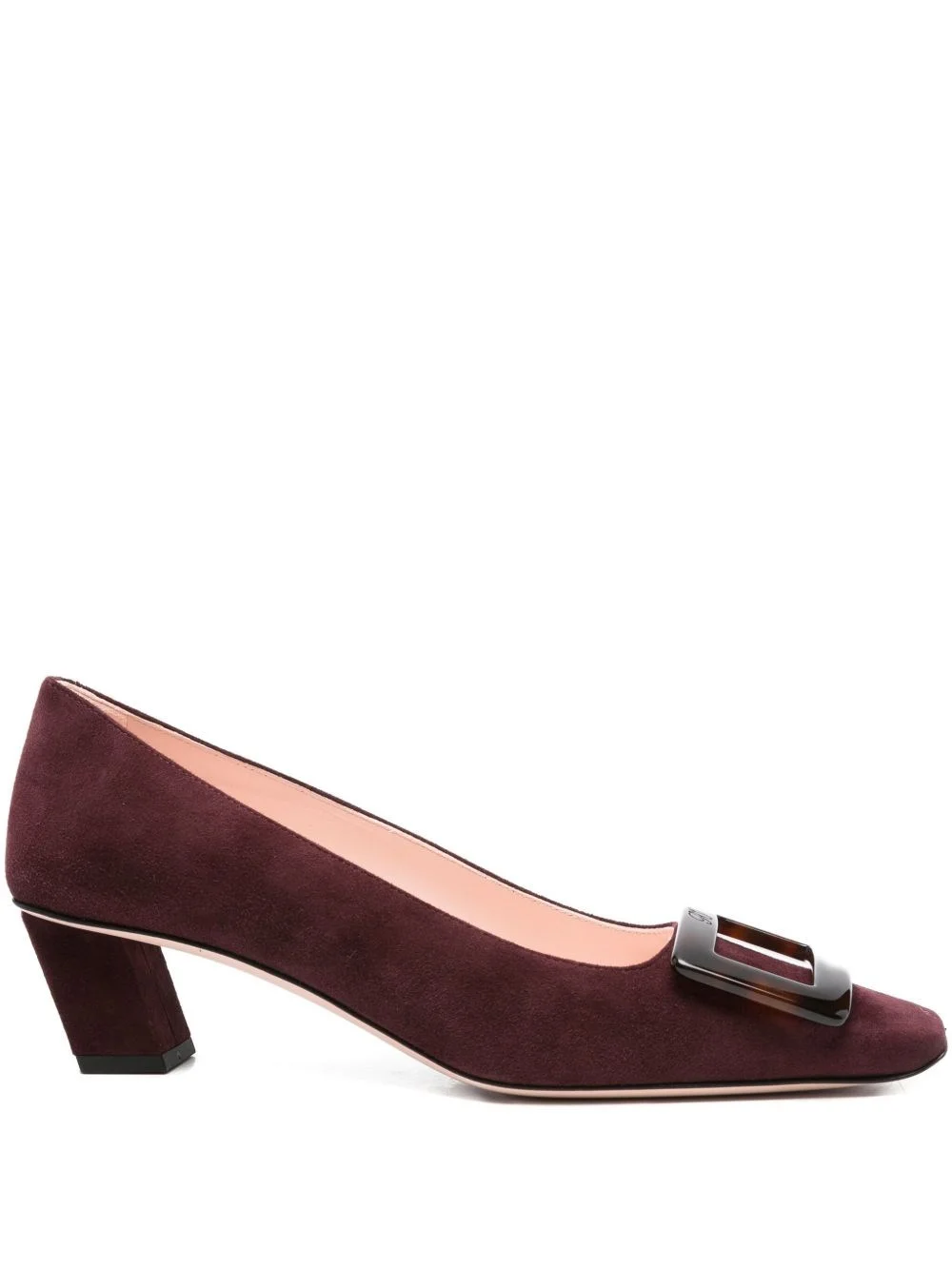 Belle Vivier Turtle leather pumps [ SKU: 10192614212 ] The Belle Vivier Turtle leather pumps by Roger Vivier are a stunning addition to any luxury footwear collection. With their sophisticated square toe and elegant buckle embellishment, these pumps effortlessly elevate both casual and formal outfits. Perfect for a stylish day at the office or an evening out, they pair beautifully with tailored trousers or an elegant dress. Crafted in Italy, these pumps embody both fashion-forward design and timeless luxury. The 45mm heel offers a comfortable yet chic lift, making them ideal for all-day wear. Embrace the elegance of Roger Vivier and make a statement with every step. Composition Leathear 100% Reference RVW00639540HR0R822 Made in ITALY Size and Fit HEEL: 4.5 Centimetres