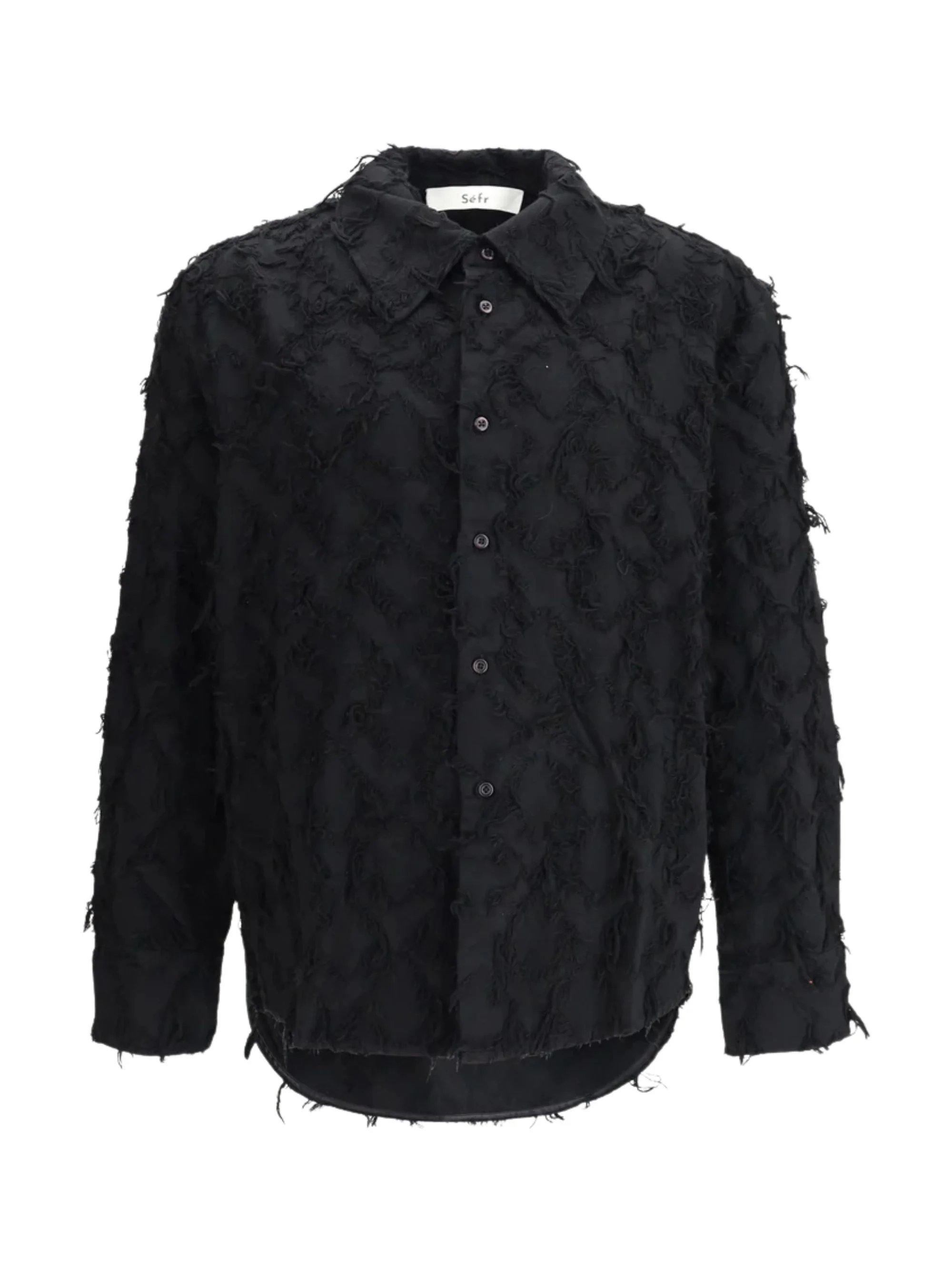 Wes shirt [ SKU: 11459535319 ] black fringed detail button fastening long sleeves buttoned cuffs curved hem Reference WESFRINGEDBLACKTWILL