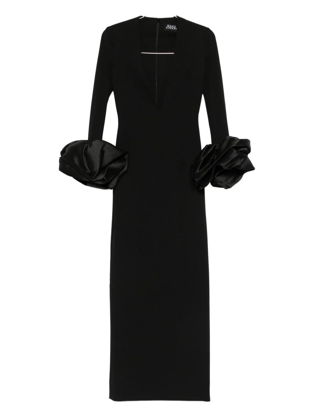 Valerie maxi dress [ SKU: 10191912860 ] black v-neck long sleeves ruffled cuffs concealed zip fastening at the back midi length Composition 95% polyester 5% elastane Reference OS46050BLACK Made in China