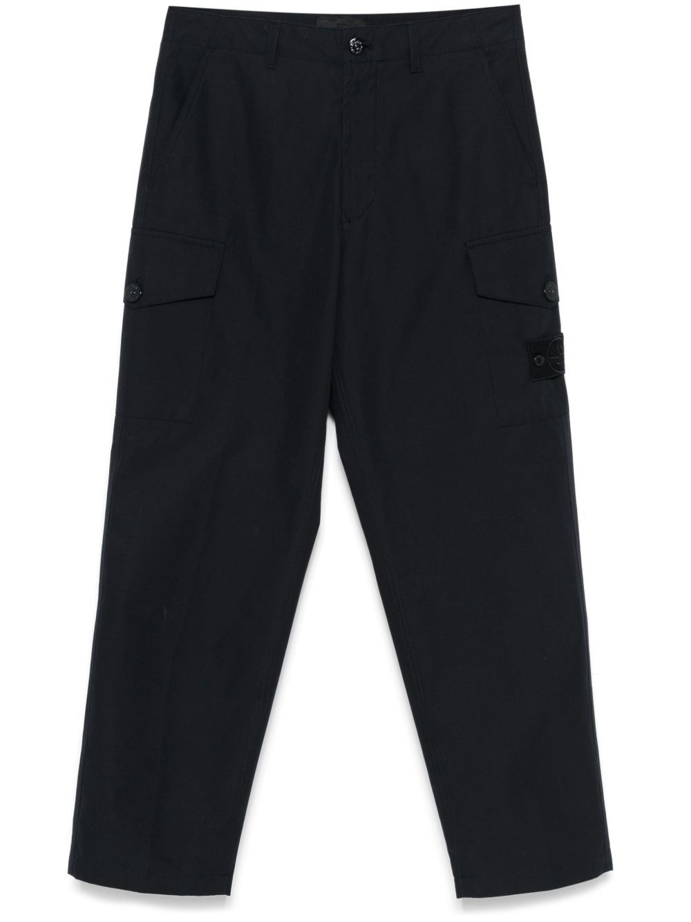 Trousers with logo [ SKU: 11306774270 ] navy blue concealed fly and button fastening belt loops two diagonal pockets to the sides two side cargo pockets Composition 100% COTTON Reference 3100008S00F1V0020 Made in Vietnam