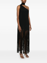 Atlanta asymmetric one-shoulder fringed crepe gown
