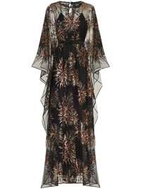 Gran Soleil long kaftan [ SKU: 10193464839 ] black self-tie fastening crew neck sequin embellishment floor-length Composition Lining: Acetate 78%, Viscose 22% Outer: Polyester 100% Reference TMPS2512133 Made in Italy Size and Fit This piece fits true to size. We recommend you get your regular size Model is 1,75m / 5ft 8in wearing size 40 (IT)