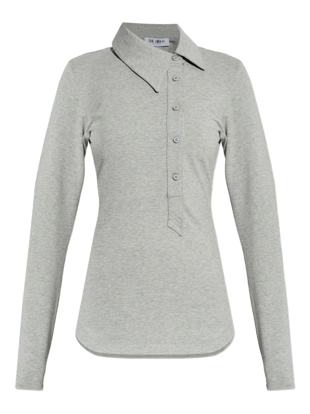 Cotton polo shirt [ SKU: 10193784788 ] grey button fastening collared long sleeves curved hem Composition 96% Cotton 4% Elastane Reference 260WCI00031JJF006AA183 Made in Portugal