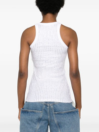 Strass embellished cotton top [ SKU: 10116547725 ] optical white cotton ribbed knit rhinestone embellishment scoop neck sleeveless straight hem Composition Cotton 100% Reference 247WCT276J050R480 Made in Portugal Size and Fit This piece fits true to size. We recommend you get your regular size Model is 1,75m / 5ft 8in wearing size 40 (IT)