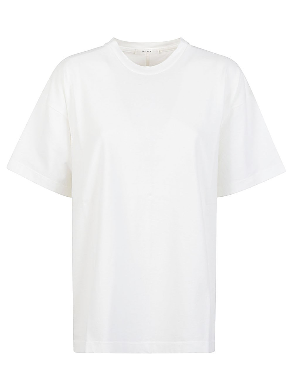 Lavinia cotton t-shirt [ SKU: 10194591383 ] Oversized T-shirt in medium-weight cotton jersey with a ribbed crew neck and signature branding detail at the centre back. Composition Cotton 100% Reference 9008K526OWH Made in Italy Size and Fit This piece fits true to size. We recommend you get your regular size Model is 1,75m / 5ft 8in wearing size S