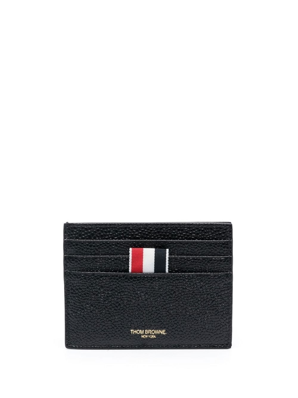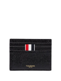 Leather credit card case [ SKU: 10191938305 ] black/white leather pebbled texture signature grosgrain loop tab note compartment gold-tone logo lettering Composition Furs & Skins->Calf Leather100.0 % Reference MAW031L00198001 Size and Fit WIDTH: 8.0 Centimetres LENGTH: 11.0 Centimetres