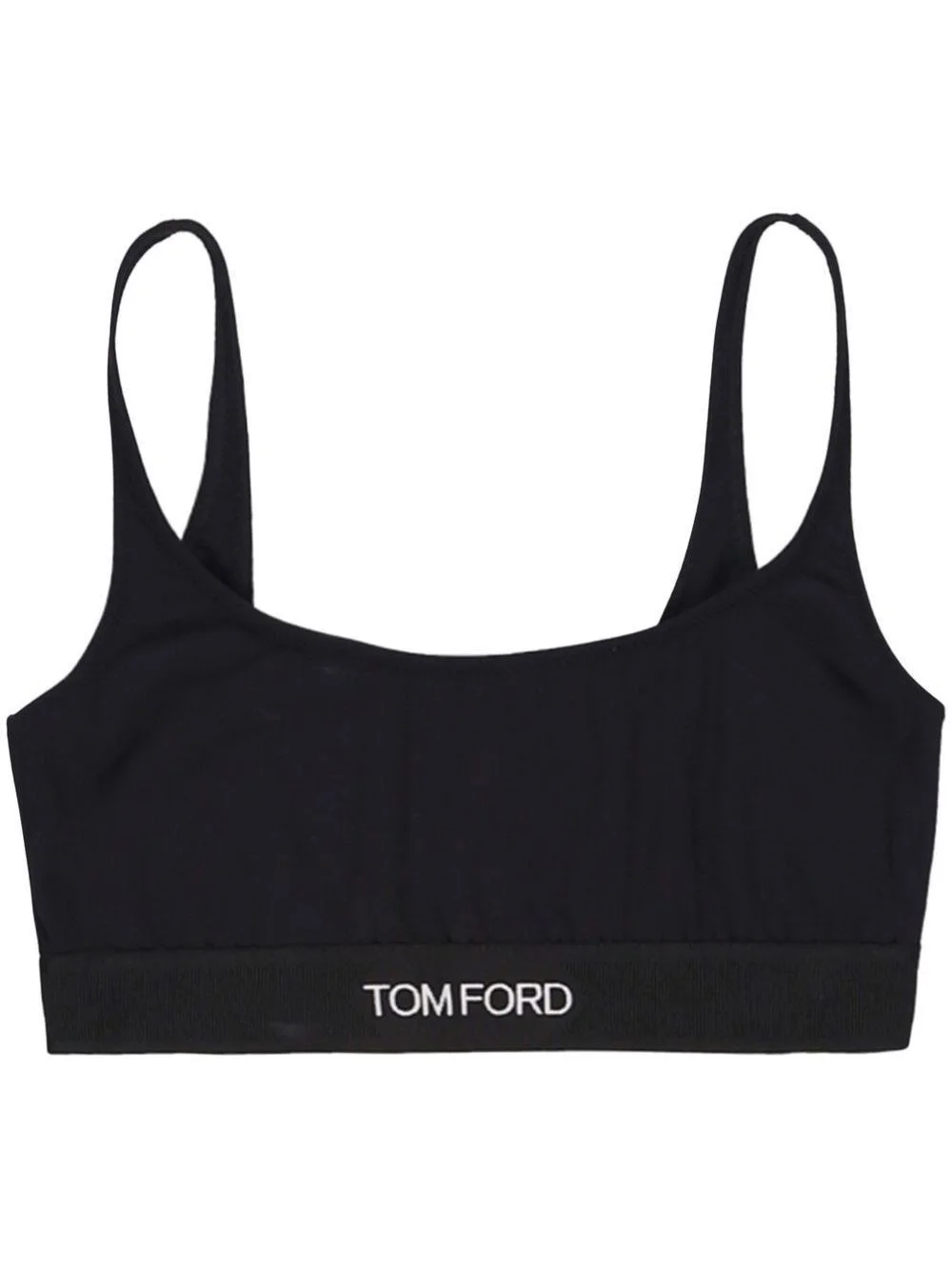 Logo bralette [ SKU: 10195775954 ] The Logo bralette from Tom Ford epitomizes luxury in the realm of clothing. This exquisite piece features a sleek elasticated design with a distinctive logo waistband and a scoop neckline, ensuring both comfort and style. Ideal for layering under sheer tops or pairing with high-waisted trousers, it seamlessly integrates into a sophisticated wardrobe. Elevate your everyday attire with this essential item that embodies modern elegance. Composition Modal 97%, Spandex/Elastane 3% Reference BRJ016JEX011LB999