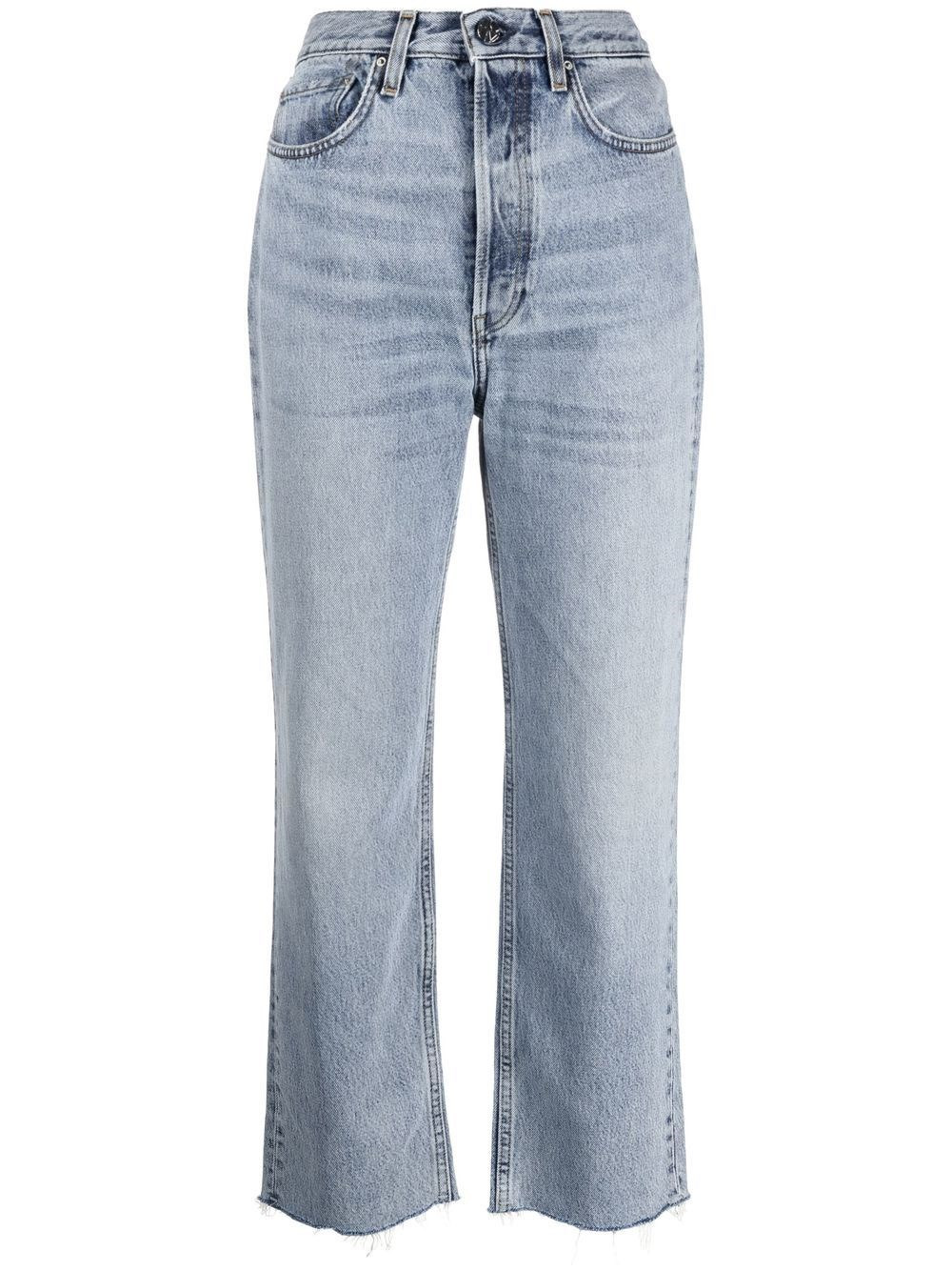 Organic cotton denim jeans [ SKU: 10114535427 ] classic-cut cropped jeans from TOTEME featuring light blue, organic cotton, stonewashed, straight leg, high waist, logo patch to the rear, belt loops, concealed fly and button fastening, classic five pockets, raw-cut hem and cropped. POSITIVELY CONSCIOUS: This Planet Conscious product is made from at least 50% organic materials, which helps you support organic farming practices such as the restricted use of synthetic chemicals and genetically modified seeds, improved soil fertility and better livestock management.. Composition Organic Cotton 100% Reference 222235741485 Made in Italy Size and Fit This piece fits true to size. We recommend you get your regular size Model is 1,75m / 5ft 8in wearing size 27 (WAIST CM)