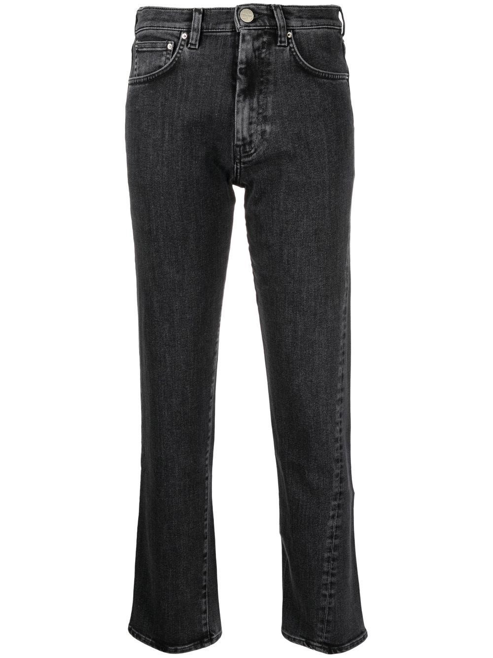 Organic cotton denim jeans [ SKU: 10117527517 ] Black cotton blend twisted-seam straight-leg jeans from TOTEME featuring straight leg, logo patch to the rear, high waist, belt loops, front button and zip fastening, classic five pockets and cropped. Conscious: We've partnered with Good On You – an ethical agency that rates how sustainably brands perform. This item comes from a brand that performs well in relation to their impact on people, which ensures good working conditions in the supply chain.. Composition Organic Cotton 97%, Elastane 3% Reference 222232743300 Made in Italy Size and Fit This piece fits true to size. We recommend you get your regular size Model is 1,75m / 5ft 8in wearing size 27 (WAIST CM)