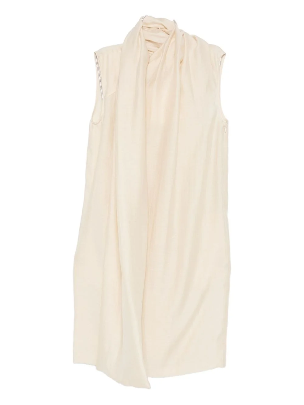 Scarf midi dress [ SKU: 10196137995 ] light beige sleeveless side zip fastening draped neck attached scarf Composition 65% LYOCELL, 25% POLYESTER, 10% LINEN Reference 254WRD0251FB0265116 Made in China