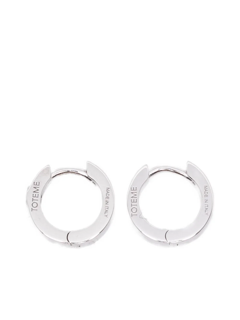 White gold earrings [ SKU: 10190065878 ] Elevate your accessory collection with these exquisite White gold earrings by TOTEME. Perfect for both casual and formal occasions, these earrings feature a unique hoop design with an engraved logo, exuding sophistication and elegance. Pair them with a chic evening gown for an event or wear them with a tailored suit for a refined office look. Crafted from high-quality materials, they embody a commitment to timeless style and sustainability, making them a sustainable choice for the modern woman. Composition 18kt White Gold 100% Reference 251WJF0010JA0006279