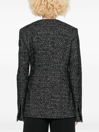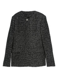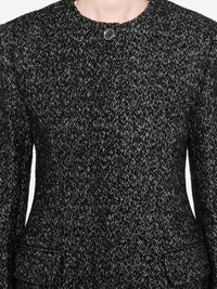 Wool blazer jacket [ SKU: 10193637177 ] black white speckled weave collarless single button fastening welt pockets long sleeves Composition 53% WOOL RWS, 21% WOOL, 20% POLYESTER, 6% POLYAMIDE Reference 254WRO0145FB0507046 Made in ROMANIA