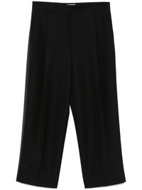 Wool blend trousers [ SKU: 10191887110 ] black recycled polyester blend interlock twill weave concealed front fastening belt loops high waist satin trim pleat detailing pressed crease two side slit pockets two rear button-fastening jetted pockets tailored cut tapered leg Composition Polyester 55% Wool 45% Reference 251WRB0254FB0026001 Made in Portugal Size and Fit This piece fits true to size. We recommend you get your regular size Model is 1,75m / 5ft 8in wearing size 36 (FR)