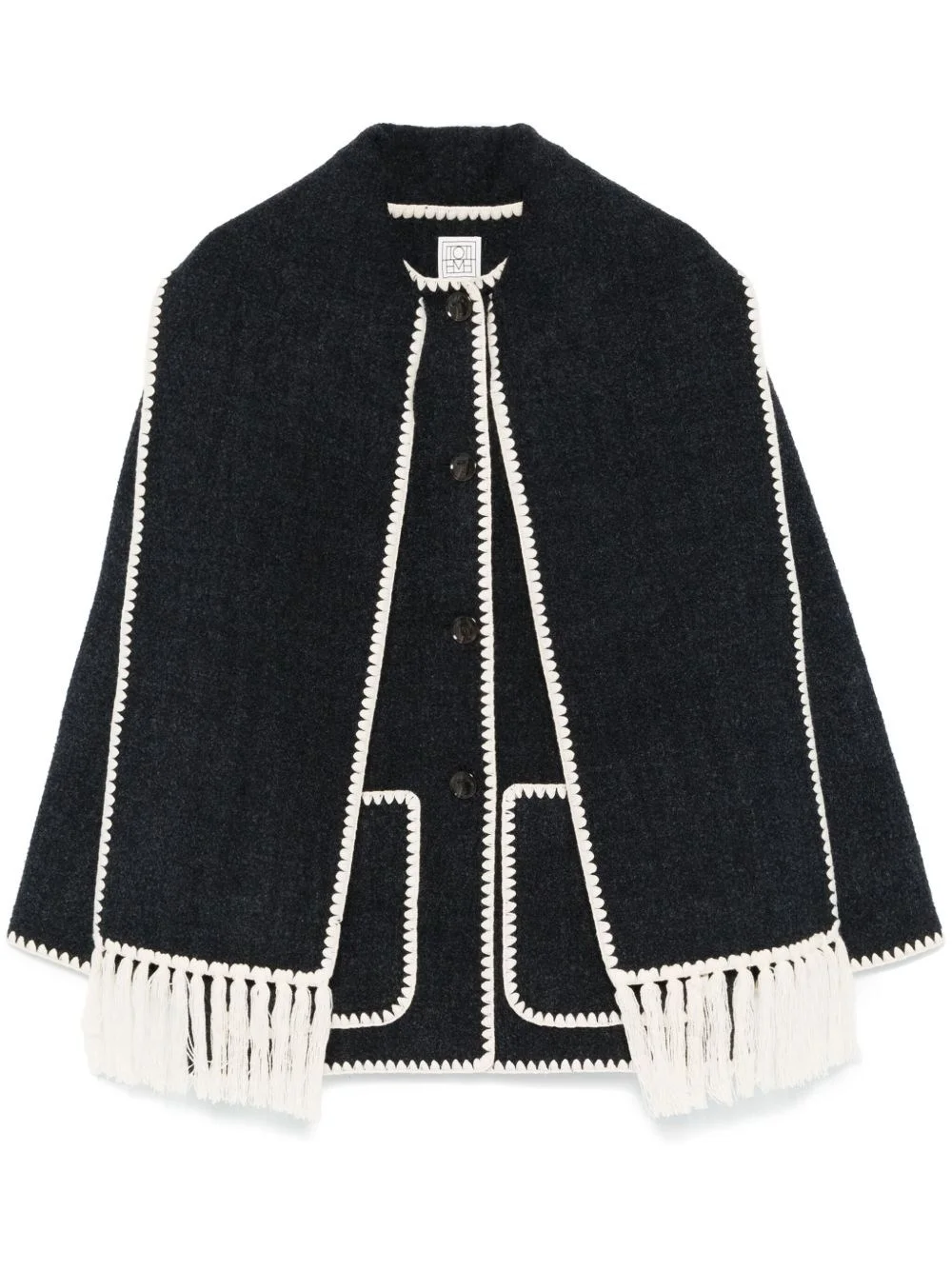 Wool scarfed jacket [ SKU: 10190126718 ] anthracite grey wool blend felted whipstitch trim attached scarf front button fastening round neck drop shoulder long sleeves two side patch pockets unlined straight hem Composition Wool 88% Polyester 12% Reference 244WRO918FB0292083