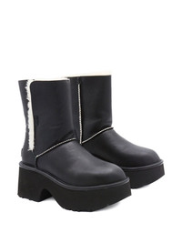 Esmee boots [ SKU: 10196008690 ] black leather upper fur trim platform sole block heel topstitching Composition Wool or fine animal hair->Recycled Wool60.0 % Furs & Skins->Sheepskin100.0 % Synthetic->Tencel40.0 % Synthetic->Polyethylene vinyl acetate (PEVA)100.0 % Synthetic->Recycled Polyester100.0 % Reference 1172590BLK Made in Viet Nam