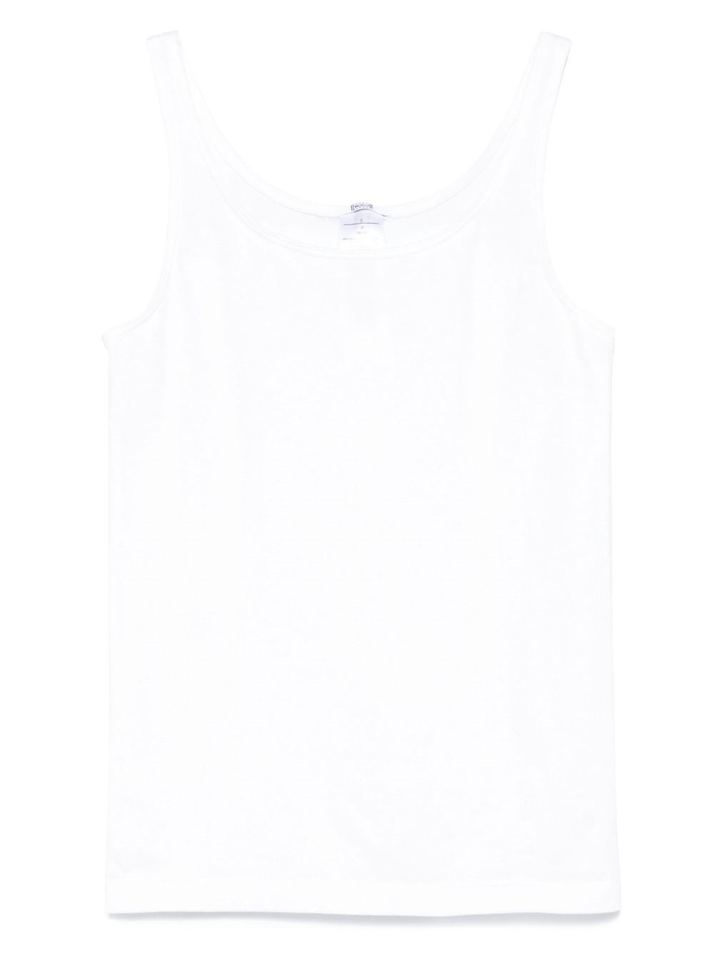 Coton blend tank top [ SKU: 10192705859 ] white scoop neck sleeveless straight hem Composition Synthetic->Elastane6.0 % Synthetic->Polyamide46.0 % Natural (Veg)->Cotton48.0 % Reference 550451001 Made in Slovenia Size and Fit This piece fits true to size. We recommend you get your regular size Model is 1,75m / 5ft 8in wearing size S