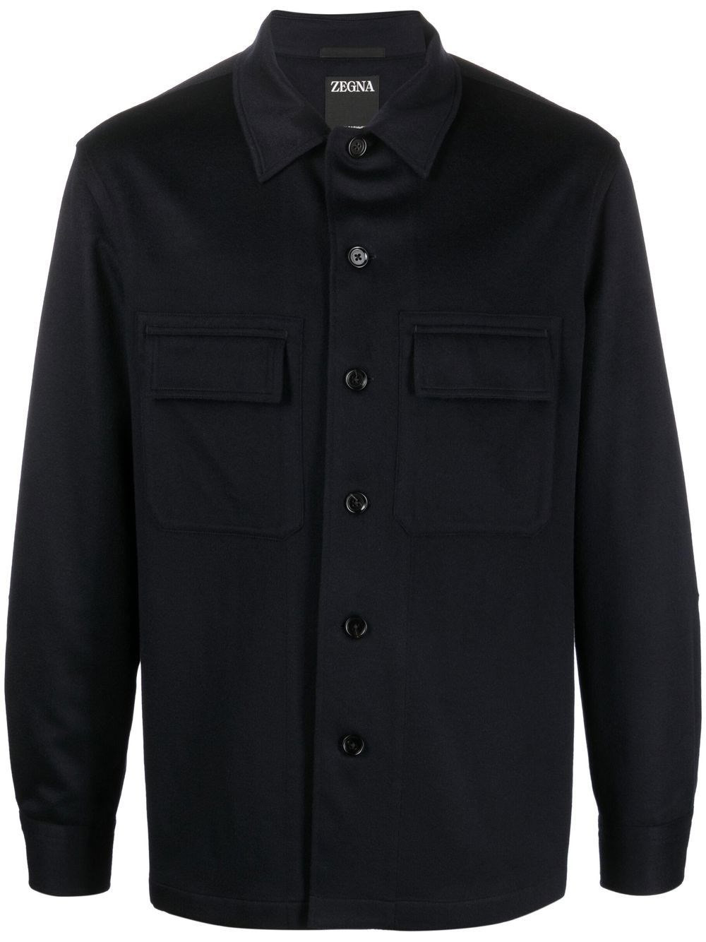 Cashmere Overshirt OASI [ SKU: 11307973892 ] navy blue cashmere classic collar two chest flap pockets front button fastening long sleeves buttoned cuffs straight hem Composition 100% CASHMERE Reference E8V46SOT6B923 Made in Turkey