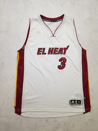 The product is a men's size XL white Adidas Miami Heat Dwyane Wade #3 jersey, perfect for NBA basketball fans looking to show their support for the Miami Heat. Made with high-quality materials, this jersey features the iconic Adidas brand logo, Dwyane Wade's player number, and the team colors. Ideal for games or casual wear, this jersey is a must-have for any basketball enthusiast wanting to represent their favorite player and team in style. Despite the military situation in Ukraine, the delivery of your orders is good❗️ SMOKE FREE HOUSE SIZE XL ( advise to check the measurements, as the sizes sometimes different ). Pre-owned condition with defects ( small pulls, letter W and Adidas logo have came off, lost ) , for more information please see all Pictures and ask questions. Open to offers and trade . Worldwide shipping from Ukraine with tracking number. Terms: UK, EU and most of countries: 14-45 days USA: 10-20 days Israel, Italy, Island, Canada countries: 14-30 days ( depends only on postage service of destination country) Attention! Postage to Australia, Canada is difficult. Their inside postage services delete tracking number which we add, so we cannot track it. The item will be shipped as soon as possible, usually takes up to 5 days. Keep in mind that there may be any delays in delivery. No returns, exchanges or refunds. Check the measurements, ask questions beforehand All the measurements are approximate (+/- 1 cm) Trusted shop! Buy with confidence. Measurements: Approximate Measurements with garment laid flat: Chest: Armpit to armpit 61 cm 24 in Hem 63 cm 24.8 in Shoulders 39 cm 15.3 in Length bottom of the collar to the bottom of the hem 81 cm 31.8 in Delivery: Ukrposhta priority avia Location: Ukraine. Follow me so you don't miss new updates and don't forget to check out my other listings. FEEDBACK: If you're happy with your purchase, please leave 5-star feedback. If you have any concerns, contact me via messages, and I'll resolve them to earn your 5-star review!
