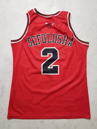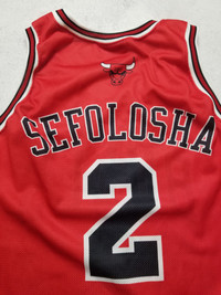 The product is a vintage Champion THABO SEFOLOSHA Chicago Bulls jersey in men's size M. This red jersey features the player's name and the team's logo, representing the National Basketball Association (NBA). Perfect for fans of basketball and the iconic Chicago Bulls, this jersey is a piece of sports memorabilia that captures the nostalgia of the team's legendary era. Despite the military situation in Ukraine, the delivery of your orders is good❗️ SMOKE FREE HOUSE SIZE M ( advise to check the measurements, as the sizes sometimes different ). Very Good Pre-owned condition ( two super small pull-dots ), for more information please see all Pictures and ask questions. Open to offers and trade . Worldwide shipping from Ukraine with tracking number. Terms: UK, EU and most of countries: 14-45 days USA: 10-20 days Israel, Italy, Island, Canada countries: 14-30 days ( depends only on postage service of destination country) Attention! Postage to Australia, Canada is difficult. Their inside postage services delete tracking number which we add, so we cannot track it. The item will be shipped as soon as possible, usually takes up to 5 days. Keep in mind that there may be any delays in delivery. No returns, exchanges or refunds. Check the measurements, ask questions beforehand All the measurements are approximate (+/- 1 cm) Trusted shop! Buy with confidence Measurements: Approximate Measurements with garment laid flat: Chest: Armpit to armpit 55 cm 21.6 in Hem 56 cm 22 in Shoulders 32 cm 12.5 in Length bottom of the collar to the bottom of the hem 71 cm 27.9 in Delivery: Ukrposhta priority avia Location: Ukraine. Follow me so you don't miss new updates and don't forget to check out my other listings. Follow me so you don't miss new updates and don't forget to check out my other listings. FEEDBACK: If you're happy with your purchase, please leave 5-star feedback. If you have any concerns, contact me via messages, and I'll resolve them to earn your 5-star review!