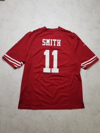 The Nike Vapor Elite Authentic San Francisco 49ers #11 Smith Red NFL Jersey in size L is a high-quality and officially licensed sports apparel item for men. Made by Nike, it features the player's name "Smith" and the iconic team colors of the San Francisco 49ers, showcasing team pride and support. This jersey is perfect for football enthusiasts looking to represent their favorite team and player on game days. Made for the National Football League (NFL), this jersey is a must-have for any San Francisco 49ers fan. Despite the military situation in Ukraine, the delivery of your orders is good❗️ SMOKE FREE HOUSE SIZE L ( advise to check the measurements, as the sizes sometimes different ). Good Pre-owned condition ( scuff next to the number on the back, cracks on the back number ), for more information please see all Pictures and ask questions. Open to offers and trade . Worldwide shipping from Ukraine with tracking number. Terms: UK, EU and most of countries: 14-45 days USA: 10-20 days Israel, Italy, Island, Canada countries: 14-30 days ( depends only on postage service of destination country) Attention! Postage to Australia, Canada is difficult. Their inside postage services delete tracking number which we add, so we cannot track it. The item will be shipped as soon as possible, usually takes up to 5 days. Keep in mind that there may be any delays in delivery. No returns, exchanges or refunds. Check the measurements, ask questions beforehand All the measurements are approximate (+/- 1 cm) Trusted shop! Buy with confidence. Measurements: Approximate Measurements with garment laid flat: Chest: Armpit to armpit 63 cm 23.7 in Hem 62 cm 24.4 in Shoulders 48 cm 18.8 in Sleeve Length 36 cm 14.1 in Length bottom of the collar to the bottom of the hem 78 cm 30.7 in Delivery: Ukrposhta priority avia Location: Ukraine. Follow me so you don't miss new updates and don't forget to check out my other listings. Follow me so you don't miss new updates and don't forget to check out my other listings. FEEDBACK: If you're happy with your purchase, please leave 5-star feedback. If you have any concerns, contact me via messages, and I'll resolve them to earn your 5-star review!