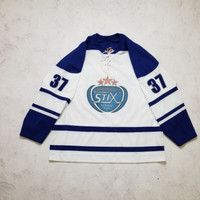 Get ready to hit the ice in style with this CCM Air-Knit Sheffield Stix jersey. Made with high-quality materials, this jersey is perfect for any hockey fan looking to show their support for the team. The jersey is designed with the iconic Sheffield Stix logo and features a comfortable fit that will keep you warm and comfortable during the game. This jersey is available in a men's size XL and is perfect for anyone looking to show their love for the team. Whether you're playing on the ice or just cheering from the stands, this jersey is a must-have for any true fan. So why wait? Add this CCM Air-Knit Sheffield Stix jersey to your collection today! Despite the military situation in Ukraine, the delivery of your orders is good❗️ SMOKE FREE HOUSE SIZE XL ( advise to check the measurements, as the sizes sometimes different ). Good pre-owned condition ( Scuffs on the Logo, lots of small spots around the Jersey ), for more information please see all Pictures and ask questions. Open to offers and trade . Worldwide shipping from Ukraine with tracking number. Terms: UK, EU and most of countries: 14-45 days USA: 10-20 days Israel, Italy, Island, Canada countries: 14-30 days ( depends only on postage service of destination country) Attention! Postage to Australia, Canada is difficult. Their inside postage services delete tracking number which we add, so we cannot track it. The item will be shipped as soon as possible, usually takes up to 5 days. Keep in mind that there may be any delays in delivery. No returns, exchanges or refunds. Check the measurements, ask questions beforehand All the measurements are approximate (+/- 1 cm) Trusted shop! Buy with confidence. Measurements: Pit to pit 74 cm 29.1 in Hem 70 cm 27.5 in Shoulders 77 cm 30.3 in Sleeve Length 47 cm 18.5 in Length (collar to bottom) 78 cm 30.7 in Delivery: Location: Ukraine. Follow me so you don't miss new updates and don't forget to check out my other listings.