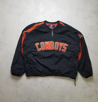 Show your team spirit with this vintage OSU Cowboys NCAA Windbreaker Jacket. Made by Majestic, this jacket features a 1/4 zip and is perfect for those chilly game days. The jacket is size L and showcases the team's colors and logo. Whether you're at the game or just out and about, this jacket is perfect for any fan looking to stay warm and stylish. Get yours today and show your support for the Ole Miss Rebels! Dispite the military situation in Ukraine, the delivery of your orders is good❗️ SMOKE FREE HOUSE SIZE L ( advise to check the measurements, as the sizes sometimes different ). Excellent good pre-owned condition, for more information please see all Pictures and ask questions. Open to offers and trade . Worldwide shipping from Ukraine with tracking number. Terms: UK, EU and most of countries: 14-45 days USA: 10-20 days Israel, Italy, Island, Canada countries: 14-30 days ( depends only on postage service of destination country) Attention! Postage to Australia, Canada is difficult. Their inside postage services delete tracking number which we add, so we cannot track it. The item will be shipped as soon as possible, usually takes up to 5 days. Keep in mind that there may be any delays in delivery. No returns, exchanges or refunds. Check the measurements, ask questions beforehand All the measurements are approximate (+/- 1 cm) Trusted shop! Buy with confidence. Measurements: Pit to pit 74 cm 29.1 in Hem 60 cm 23.6 in Sleeve Length from the collar 22 cm 8.6 in Sleeve Length from the armpit 55 cm 21.6 in Length (collar to bottom) 68 cm 26.7 in Delivery: Ukrposhta, priority avia mail Location: Ukraine. Follow me so you don't miss new updates and don't forget to check oumy other listings. FEEDBACK: If you're happy with your purchase, please leave 5-star feedback. If you have any concerns, contact me via messages.