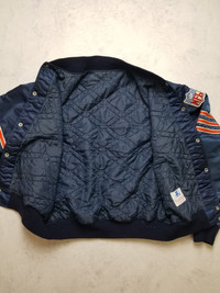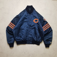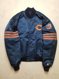 The product is a vintage 80s Starter Chicago Bears satin bomber jacket, featuring the Pro Line design for men in size M. The jacket is in the iconic blue color associated with the Chicago Bears, making it a must-have for fans of the team and the NFL. With the Starter brand known for its quality and authenticity, this jacket is a stylish and nostalgic addition to any football memorabilia collection. Despite the military situation in Ukraine, the delivery of your orders is good❗️ SMOKE FREE HOUSE SIZE Approximately M ( advise to check the measurements, as the sizes sometimes different ). Good Pre-owned condition ( There are a few tiny scuff-like marks, barely visible on close inspection. )Super small scratches, ) , for more information please see all Pictures and ask questions. Open to offers and trade . Worldwide shipping from Ukraine with tracking number. Terms: UK, EU and most of countries: 14-45 days USA: 10-20 days Israel, Italy, Island, Canada countries: 14-30 days ( depends only on postage service of destination country) Attention! Postage to Australia, Canada is difficult. Their inside postage services delete tracking number which we add, so we cannot track it. The item will be shipped as soon as possible, usually takes up to 5 days. Keep in mind that there may be any delays in delivery. No returns, exchanges or refunds. Check the measurements, ask questions beforehand All the measurements are approximate (+/- 1 cm) Trusted shop! Buy with confidence. Measurements: Approximate Measurements with garment laid flat: Chest: Armpit to armpit 69 cm 27.1 in Hem 52 cm 20.4 in Shoulders 55 cm 21.6 in Sleeve Length 68 cm 26.7 in Length bottom of the collar to the bottom of the hem 66 cm 25.9 in Delivery: Ukrposhta priority avia Location: Ukraine. Follow me so you don't miss new updates and don't forget to check out my other listings. Follow me so you don't miss new updates and don't forget to check out my other listings. FEEDBACK: If you're happy with your purchase, please leave 5-star feedback. If you have any concerns, contact me via messages, and I'll resolve them to earn your 5-star review!