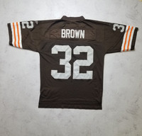 Honor your football fandom with the Reebok Throwback Jersey, a must-have for any dedicated Cleveland Browns enthusiast. This medium-sized men's jersey celebrates the legacy of Jim Brown, an icon of the sport and a testament to the Browns' rich history. Crafted with care, it features the classic brown color scheme and is officially licensed by the NFL, ensuring you're decked out in genuine team spirit. Ideal for regular season games and beyond, this jersey adds a touch of nostalgia to your game day ritual. Whether you're at the stadium or watching from home, it's a piece that connects you to the tradition and excitement of football. Wear it with pride and carry the spirit of the Cleveland Browns wherever you go. Dispite the military situation in Ukraine, the delivery of your orders is good❗️ SMOKE FREE HOUSE SIZE M ( advise to check the measurements, as the sizes sometimes different ). Good pre-owned condition ( scuffs on the sleeves ), for more information please see all Pictures and ask questions. Open to offers and trade . Worldwide shipping from Ukraine with tracking number. Terms: UK, EU and most of countries: 14-45 days USA: 10-20 days Israel, Italy, Island, Canada countries: 14-30 days ( depends only on postage service of destination country) Attention! Postage to Australia, Canada is difficult. Their inside postage services delete tracking number which we add, so we cannot track it. The item will be shipped as soon as possible, usually takes up to 5 days. Keep in mind that there may be any delays in delivery. No returns, exchanges or refunds. Check the measurements, ask questions beforehand All the measurements are approximate (+/- 1 cm) Trusted shop! Buy with confidence. Measurements: Pit to pit 57 cm 22.4 in Hem 55 cm 21.6 in Shoulders 55 cm 22.4 in Sleeve Length 30 cm 11.8 in Length (collar to bottom) 78 cm 30.7 in Delivery: Ukrposhta, priority avia mail Location: Ukraine. Follow me so you don't miss new updates and don't forget to check oumy other listings. FEEDBACK: If you're happy with your purchase, please leave 5-star feedback. If you have any concerns, contact me via messages.