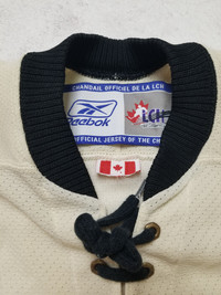 Show your support for the Remparts Quebec hockey team with this rare Reebok Air-Knit CHL jersey. The creamy white color and size XXS make it a unique addition to any fan's collection. Made for hockey enthusiasts, this jersey is perfect for those who love to play or simply admire the sport. The jersey features the iconic Reebok logo and the team crest, making it a must-have for any true fan. Despite the military situation in Ukraine, the delivery of your orders is good❗️ SMOKE FREE HOUSE SIZE unknown ( advise to check the measurements, as the sizes sometimes different ). Very good pre-owned condition, for more information please see all Pictures and ask questions. Open to offers and trade . Worldwide shipping from Ukraine with tracking number. Terms: UK, EU and most of countries: 14-45 days USA: 10-20 days Israel, Italy, Island, Canada countries: 14-30 days ( depends only on postage service of destination country) Attention! Postage to Australia, Canada is difficult. Their inside postage services delete tracking number which we add, so we cannot track it. The item will be shipped as soon as possible, usually takes up to 5 days. Keep in mind that there may be any delays in delivery. No returns, exchanges or refunds. Check the measurements, ask questions beforehand All the measurements are approximate (+/- 1 cm) Trusted shop! Buy with confidence. Measurements: Pit to pit 58 cm 22.8 in Hem 49 cm 19.2 in Shoulders 49 cm 19.2 in Sleeve Length 45 cm 17.7 in Length (collar to bottom) 65 cm 25.5 in Delivery: Location: Ukraine. Follow me so you don't miss new updates and don't forget to check out my other listings.