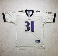Embrace the spirit of the game with this vintage 2000's Reebok Baltimore Ravens #31 J. LEWIS jersey. A must-have for any die-hard football fan, it's a classic piece of sports memorabilia that captures the essence of the regular season. The jersey, in a striking white color, is a size 2XL and designed to fit comfortably for any casual outing or to add to your collection of fan gear. Crafted with attention to detail, this authentic NFL jersey features the high-quality stitching synonymous with Reebok's craftsmanship. It celebrates the legacy of J. LEWIS and the vibrant history of the Baltimore Ravens. Whether you're watching from the stands or from the comfort of your home, this jersey is a timeless tribute to the sport and your favorite team. Despite the military situation in Ukraine, the delivery of your orders is good❗️ SMOKE FREE HOUSE SIZE 2XL ( advise to check the measurements, as the sizes sometimes different ). Good Pre-owned condition, for more information please see all Pictures and ask questions. Open to offers and trade . Worldwide shipping from Ukraine with tracking number. Terms: UK, EU and most of countries: 14-45 days USA: 10-20 days Israel, Italy, Island, Canada countries: 14-30 days ( depends only on postage service of destination country) Attention! Postage to Australia, Canada is difficult. Their inside postage services delete tracking number which we add, so we cannot track it. The item will be shipped as soon as possible, usually takes up to 5 days. Keep in mind that there may be any delays in delivery. No returns, exchanges or refunds. Check the measurements, ask questions beforehand All the measurements are approximate (+/- 1 cm) Trusted shop! Buy with confidence. Measurements: Chest 70 cm 27.5 in Hem 64 cm 25.1 in Shoulders 67 cm 26.3 in Sleeve Length 30 cm 11.8 in Length 87 cm 34.2 in Delivery: Ukrposhta priority avia Location: Ukraine. Follow me so you don't miss new updates and don't forget to check out my other listings. Follow me so you don't miss new updates and don't forget to check out my other listings. FEEDBACK: If you're happy with your purchase, please leave 5-star feedback. If you have any concerns, contact me via messages, and I'll resolve them to earn your 5-star review!