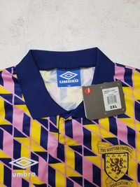 Show your support for Scotland in the 1988-1989 soccer season with this Umbro remake football shirt. The shirt features the iconic multi-color design and is available in men's size 2XL. Perfect for any soccer fan, this shirt is made for those who want to represent their favorite team on and off the field. The shirt is ideal for collectors, enthusiasts, and anyone who wants to show their love for soccer. Get your hands on this limited edition shirt and show your support for Scotland today! Despite the military situation in Ukraine, the delivery of your orders is good❗️ SMOKE FREE HOUSE SIZE 2XL ( advise to check the measurements, as the sizes sometimes different ). New with tags, for more information please see all Pictures and ask questions. Open to offers and trade . Worldwide shipping from Ukraine with tracking number. Terms: UK, EU and most of countries: 14-45 days USA: 10-20 days Israel, Italy, Island, Canada countries: 14-30 days ( depends only on postage service of destination country) Attention! Postage to Australia, Canada is difficult. Their inside postage services delete tracking number which we add, so we cannot track it. The item will be shipped as soon as possible, usually takes up to 5 days. Keep in mind that there may be any delays in delivery. No returns, exchanges or refunds. Check the measurements, ask questions beforehand All the measurements are approximate (+/- 1 cm) Trusted shop! Buy with confidence. Measurements: Pit to pit 60 cm 23.6 in Hem 60 cm 23.6 in Shoulders 50 cm 19.6 in Sleeve Length 24 cm 9.4 in Length (collar to bottom) 80 cm 31.4 in Delivery: Location: Ukraine. Follow me so you don't miss new updates and don't forget to check out my other listings.
