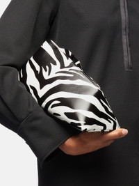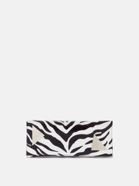 ''8.30PM'' oversized clutch in black and white zebra printed leather with magnetic closure. Made in Italy. Style 231WAH00001LBT020PR020 SIZE & FIT Height 6,7 inch, width 12,6 inch, depth 5,9 inch - Height 17 cm, width 32 cm, depth 15 cm DETAILS Main Leather: 100% calf bos taurus farm raised coo: Kenya/South Africa, Lining: 51% polyurethane, 49%(70% cotton 30% polyester), Inside pocket: 100% calf bos taurus farm raised coo: Kenya/South Africa.