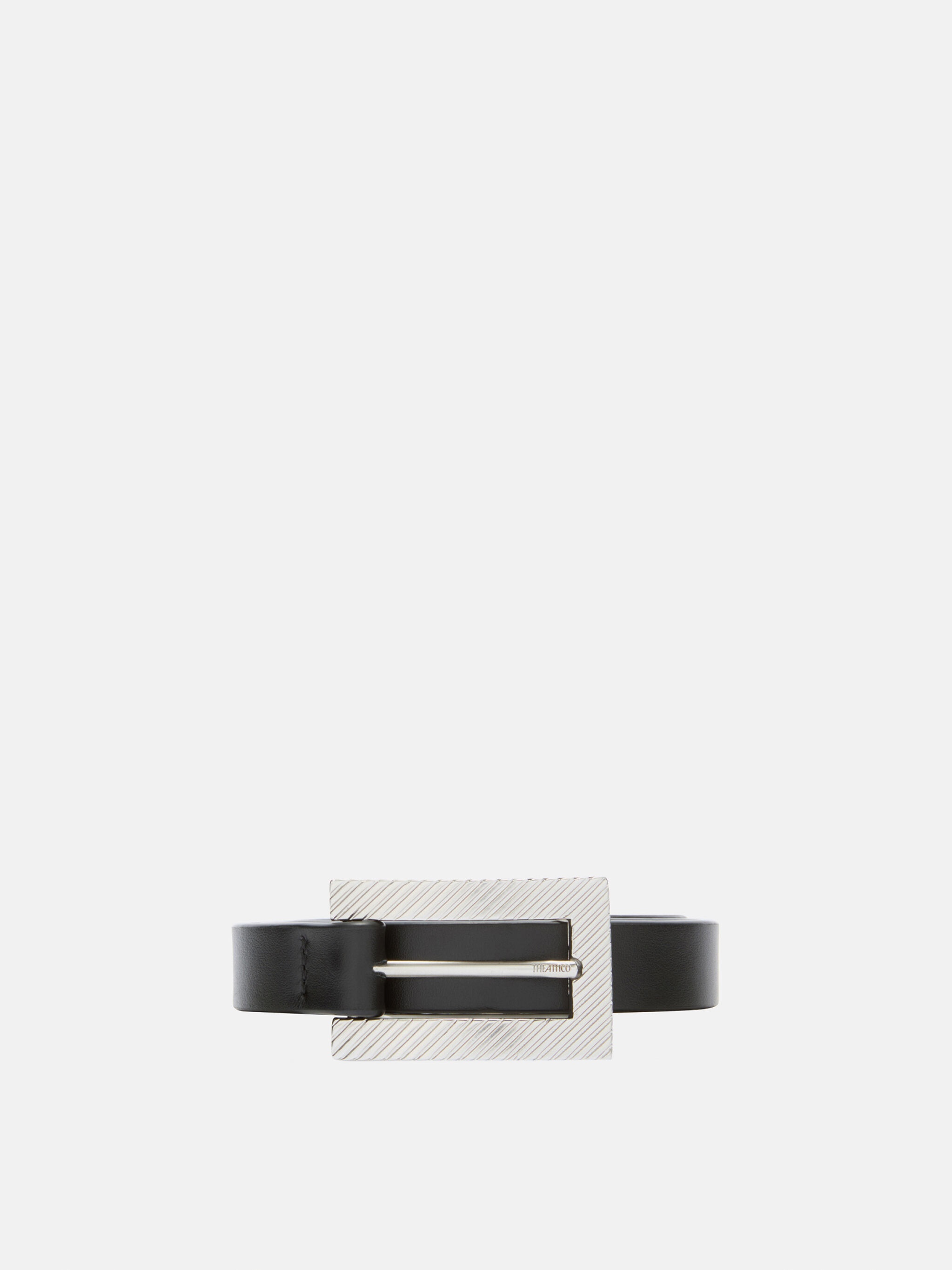 Belt in black calf leather with logo buckle. Made in Italy. Style 250WKE00028LBT019AA100 SIZE & FIT S: 29,5 inch / M: 31,5 inch / L: 33,5 inch / XL: 35,4 inch - S: 75 cm / M: 80 cm / L: 85 cm / XL: 90 cm DETAILS Main leather: 100% calf bos taurus farm raised coo: USA, lining: 100% calf bos taurus farm raised coo: USA.