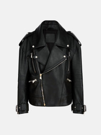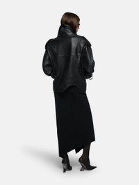 Bomber in black leather. Made in Romania. Style 251WCB00099LBT138AA100 SIZE & FIT The model is wearing a size 40 and her height is 70 in, bust 31,1 in, waist 24 in, hips 34,6 in - height 178 cm, bust 79 cm, waist 61 cm, hips 88 cm. Regular fit. We recommend taking your true size. DETAILS Main material: 100% Lamb leather (Ovis Aries Aries), dyed, farm-raised coo: Marocco, lining: 100% viscose, pocket lining: 100% cotton
