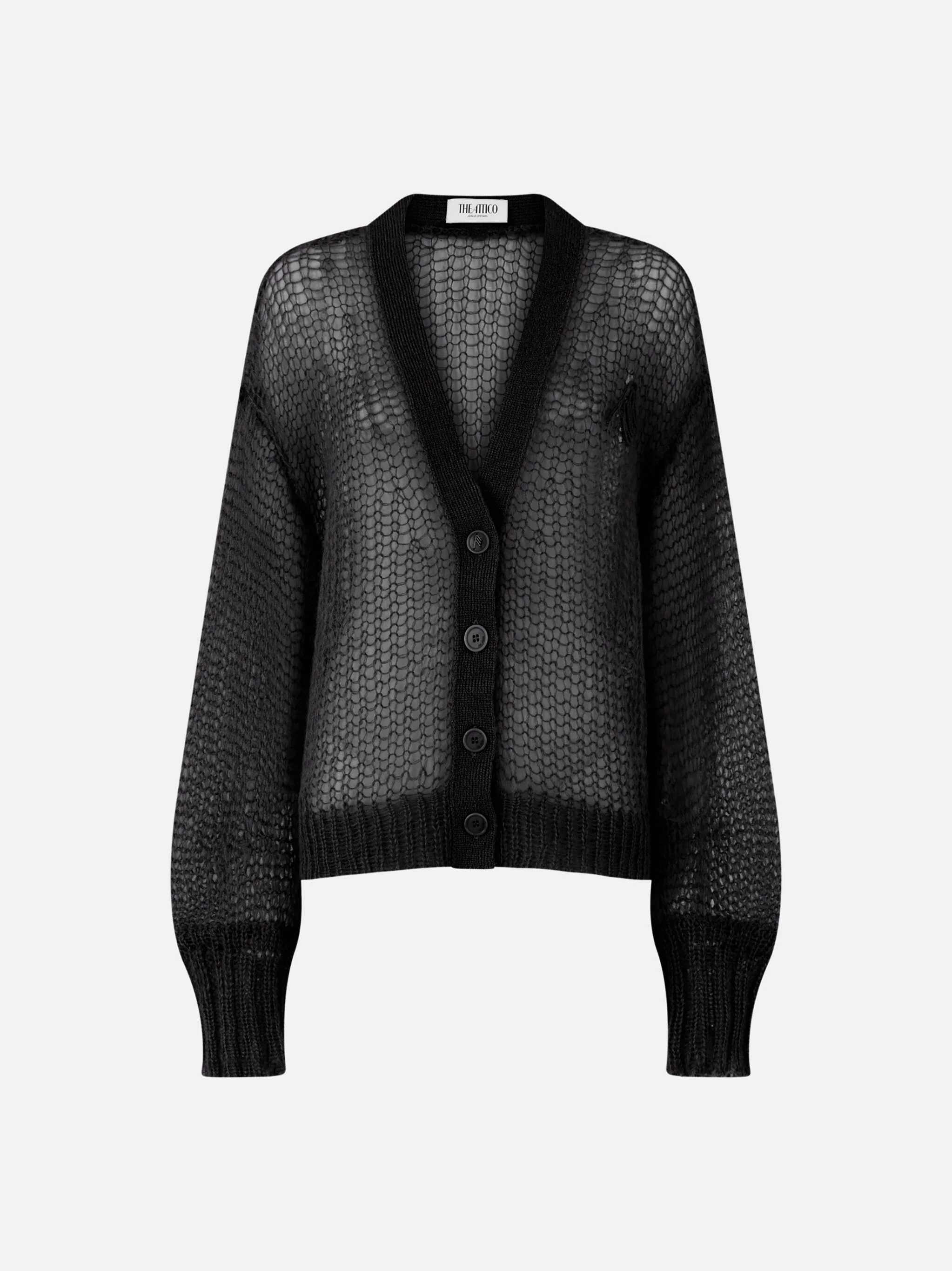 Cardigan in black light mohair with feathers. Made in Italy. Style 260WCD00011KMX002AA100 SIZE & FIT The model is wearing a size 40 and her height is 179 cm, bust 80 cm, waist 60 cm, hips 88 cm - Height 5,10 in, bust 31,4 in, waist 23 in, hips 35 in. Regular fit. We recommend taking your true size. DETAILS Main material: 50% mohair 32% polyamide 18% wool, embroidery: 48% mohair 35%polyamide 17% wool