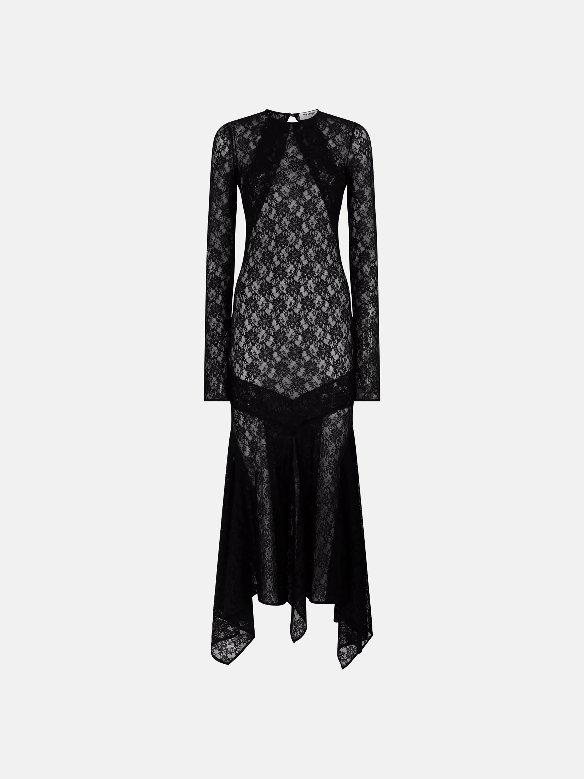 Midi dress in black stretch lace. Made in Italy. Style 260WCW00258PPE001AA100 SIZE & FIT The model is wearing a size 40 and her height is 179 cm, bust 80 cm, waist 60 cm, hips 88 cm - Height 5,10 in, bust 31,4 in, waist 23 in, hips 35 in. Regular fit. We recommend taking your true size. DETAILS Main material: 80% polyamide 20% elastodiene, second material: 96% polyesrer 4% elastodiene, third material: 100% polyamide