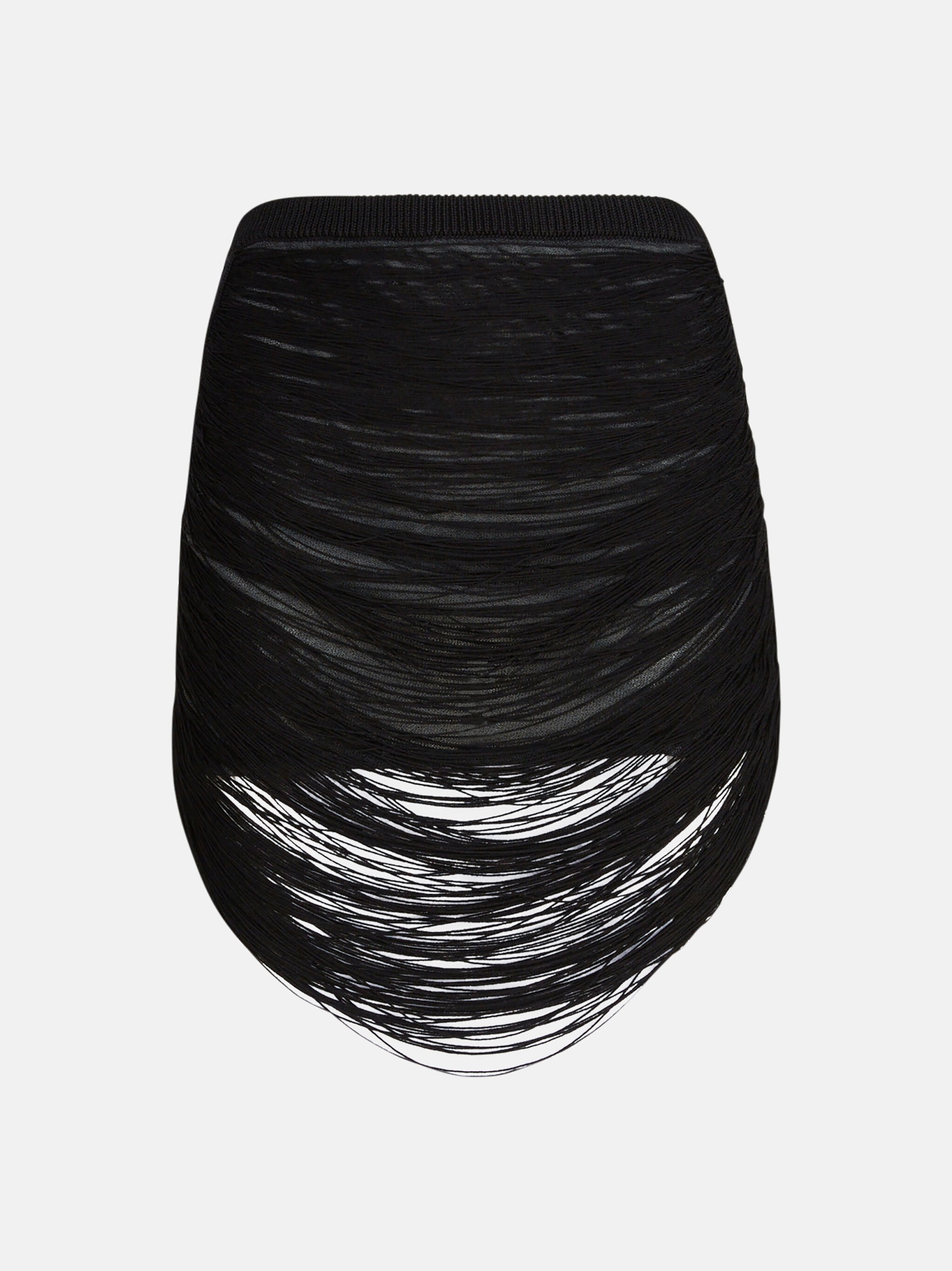 Midi skirt in black viscose fringes. Made in Italy. Style 251WCS00286KVV016AA100 SIZE & FIT The model is wearing a size 40 and her height is 70 in, bust 31,1 in, waist 24 in, hips 34,6 in - height 178 cm, bust 79 cm, waist 61 cm, hips 88 cm. Regular fit. We recommend taking your true size. DETAILS Main material: 83% viscose 17% polyamide, second material: 82% cotton 18% polyamide